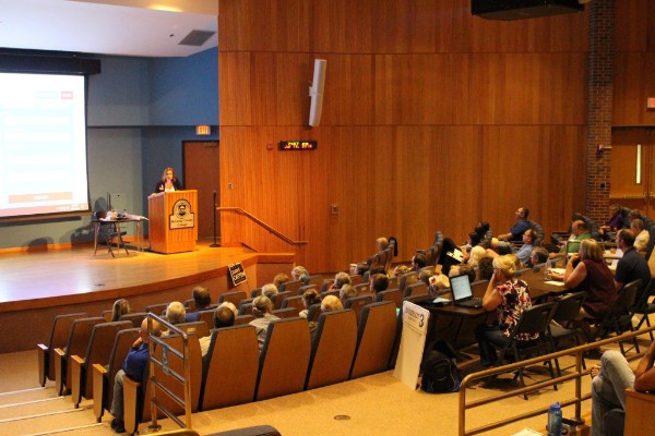 Turn in at the traffic light, then turn right and right again to park near the entrance for Building A, the very first building you come to. Enter the building, walk straight ahead, and you'll find the Conference Center on the left, opposite the library. There's no stairs and everything is fully ADA-compliant.